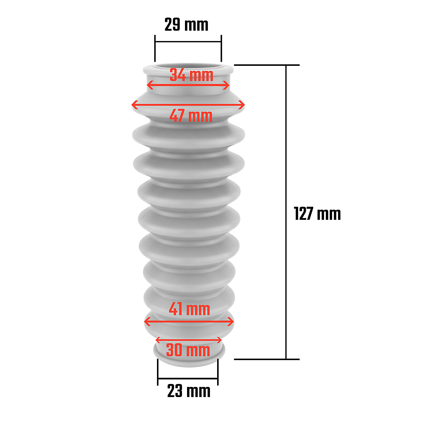 Šedá pryžová manžeta určená k ochraně kluzných ploch předních teleskopických vidlic před nečistotami a prachem.