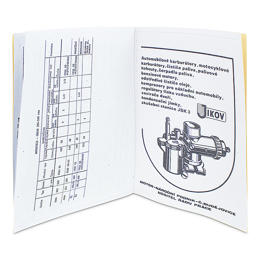Osazovací tabulky motocyklových karburátorů Jikov je katalogem s přesnými informacemi pro správné nastavení karburátorů. Pomáhají určit velikosti trysek, polohy jehel a seřízení volnoběhu.